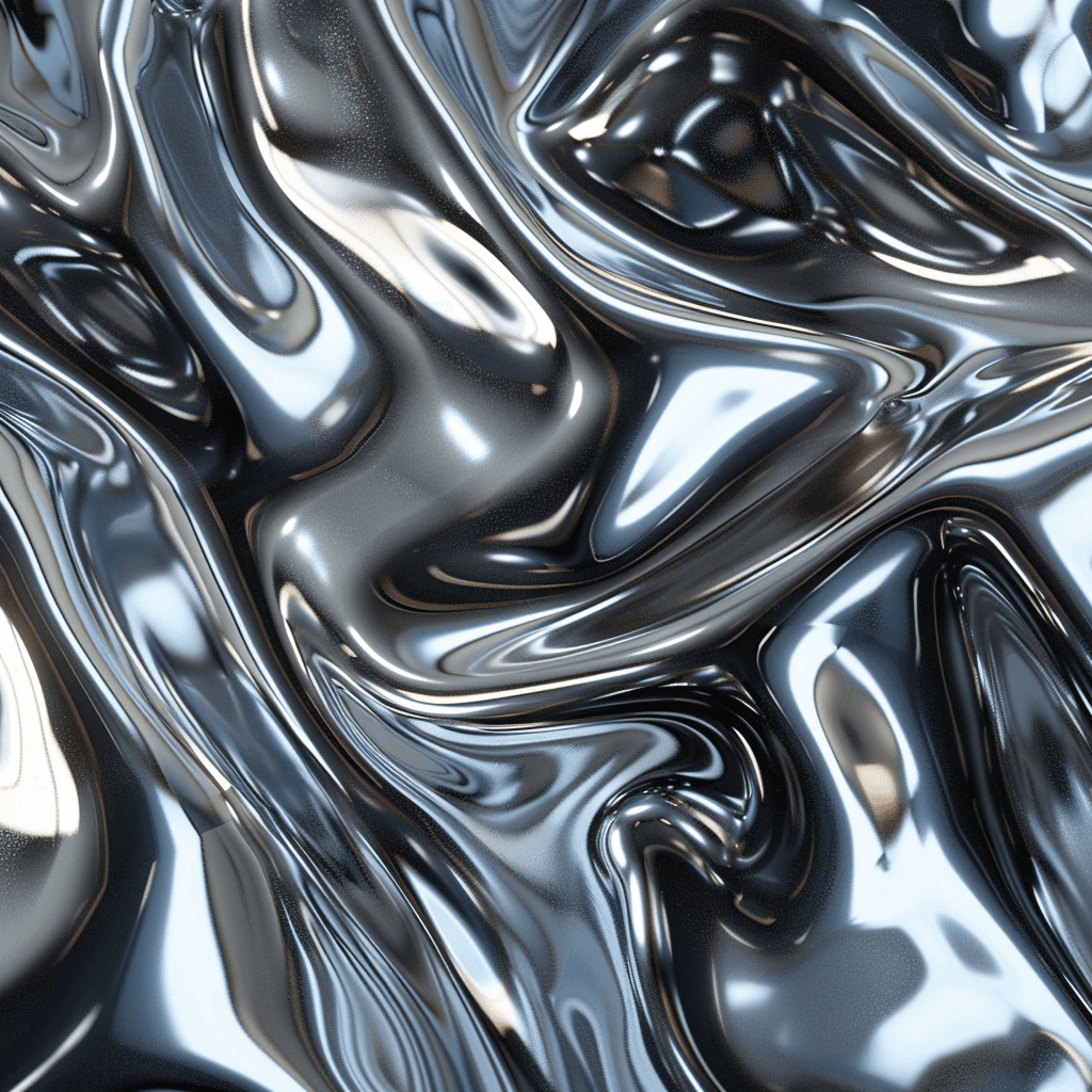 These faces are inspired by liquid metal sculptures, industrial finishes, and high-fashion metallic textiles. Each background reads like a poured metal study: stretched reflections, soft creases, and glossy pools. The shapes are organic rather than geometric, so the overall effect is an artful blend of industrial strength and handcrafted fluidity.